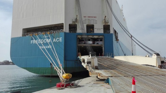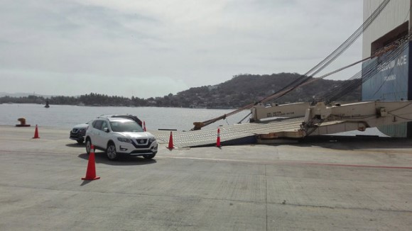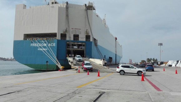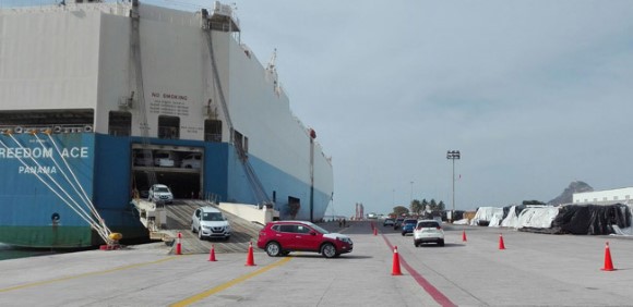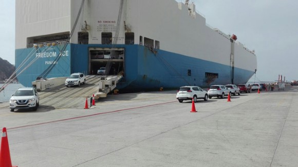 Desembarque en el puerto de Mazatlán del buque Freedom Ace de 750 autos Nissan procedente de Yokohama Japón.